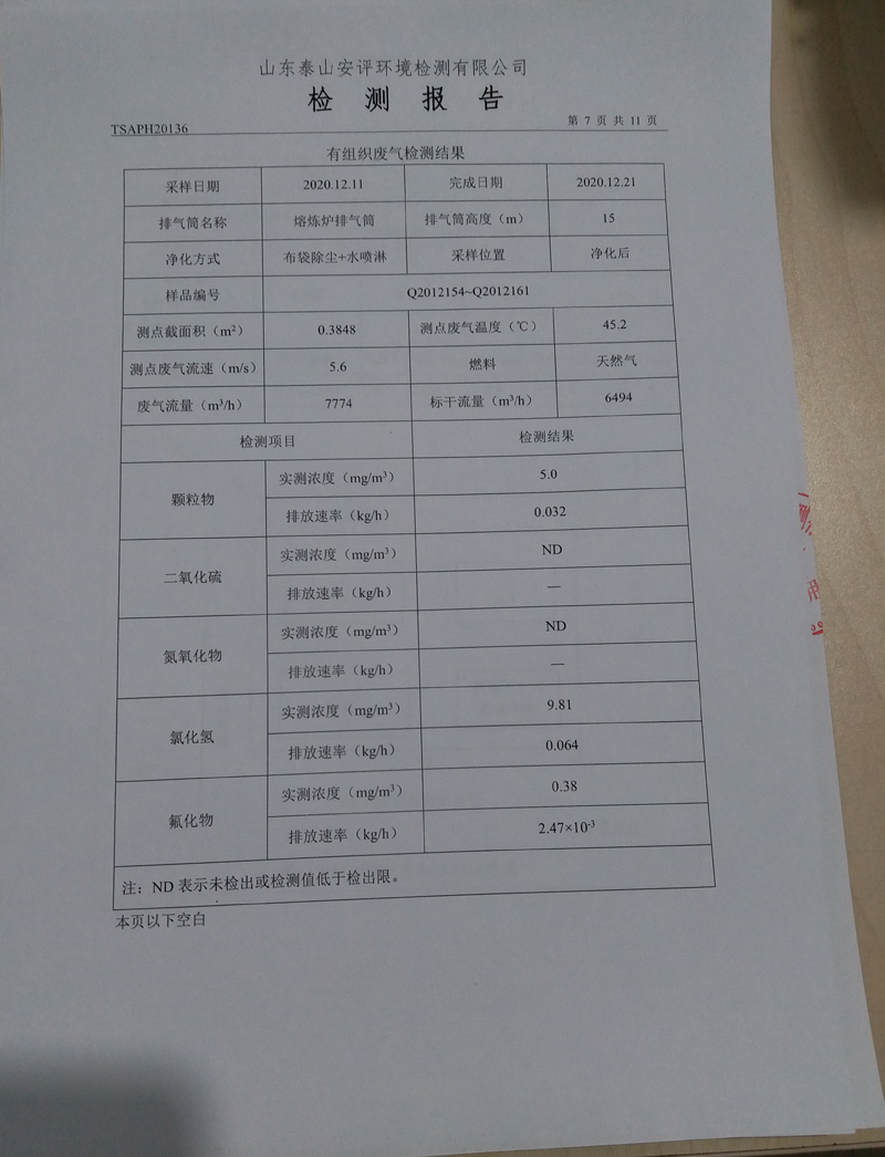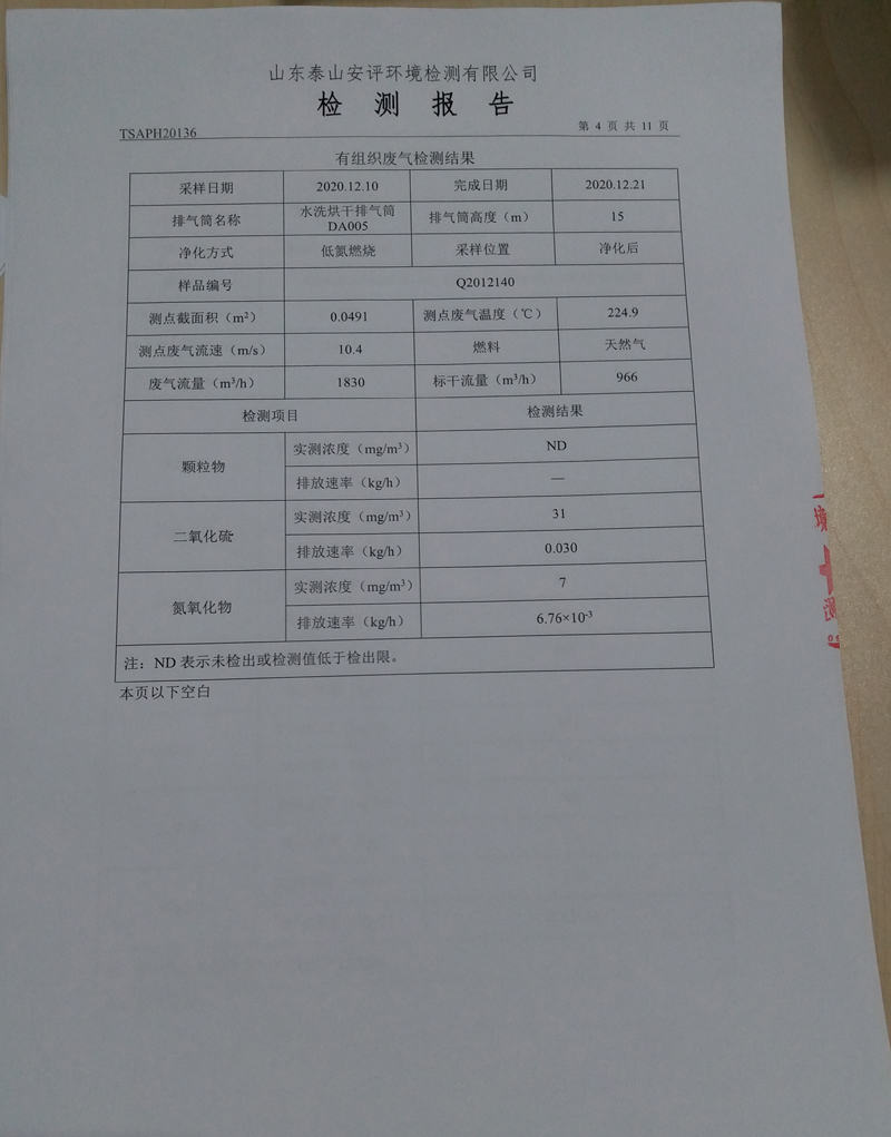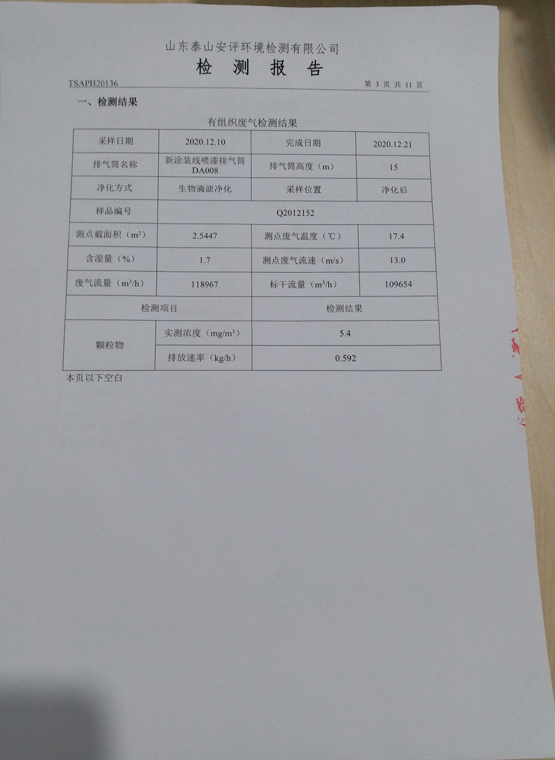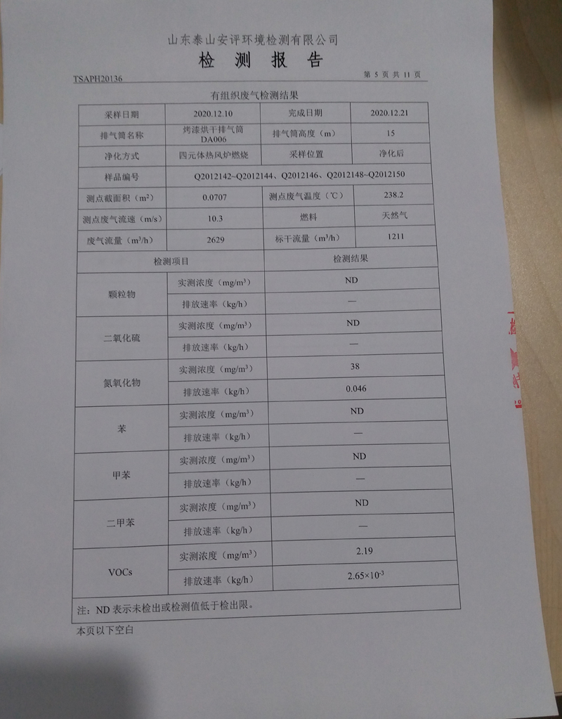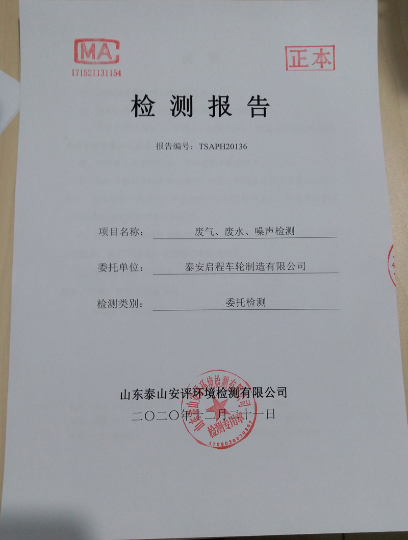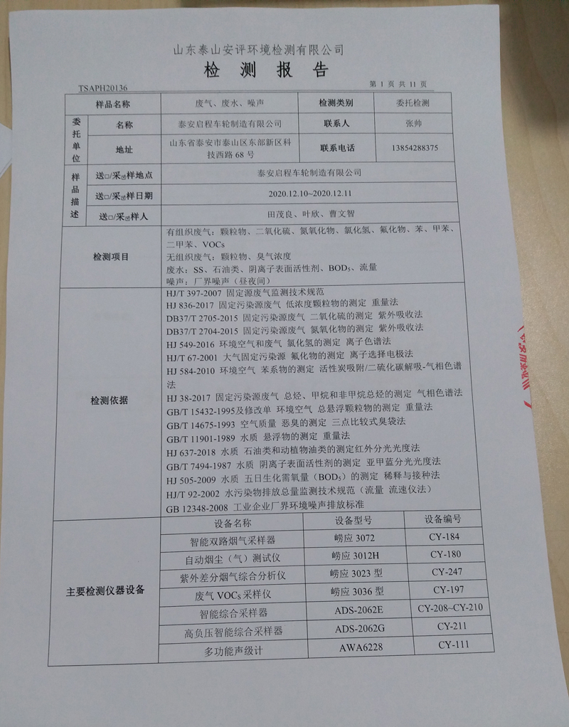泰安啟程車輪制造有限公司2020年12月份環(huán)境污染物排放檢測報告