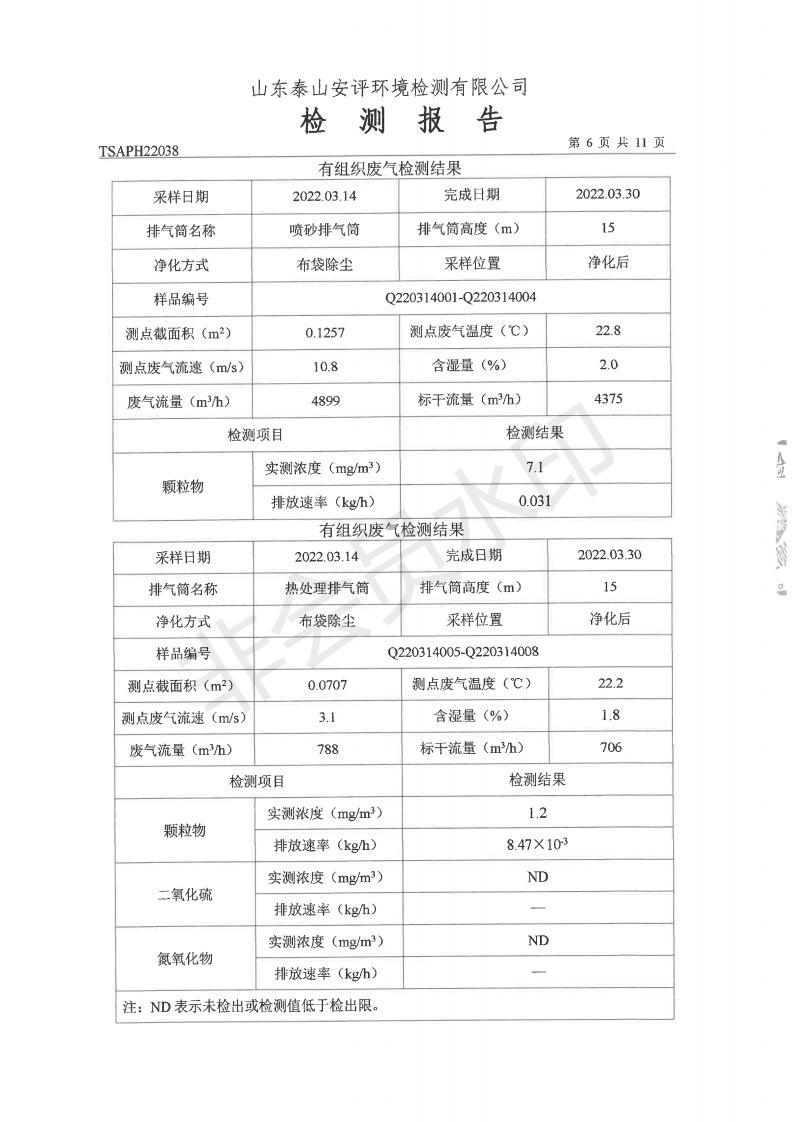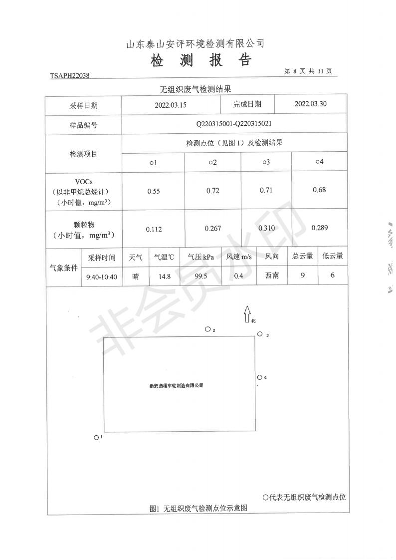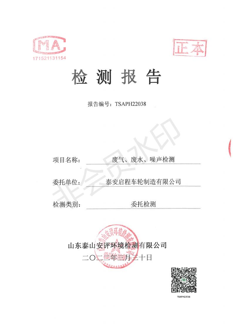泰安啟程車輪制造有限公司2022年3月份環(huán)境污染物排放檢測(cè)報(bào)告