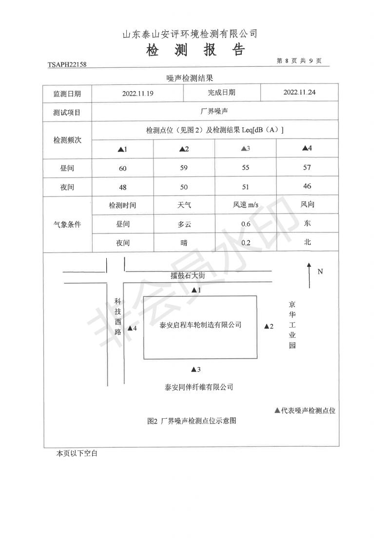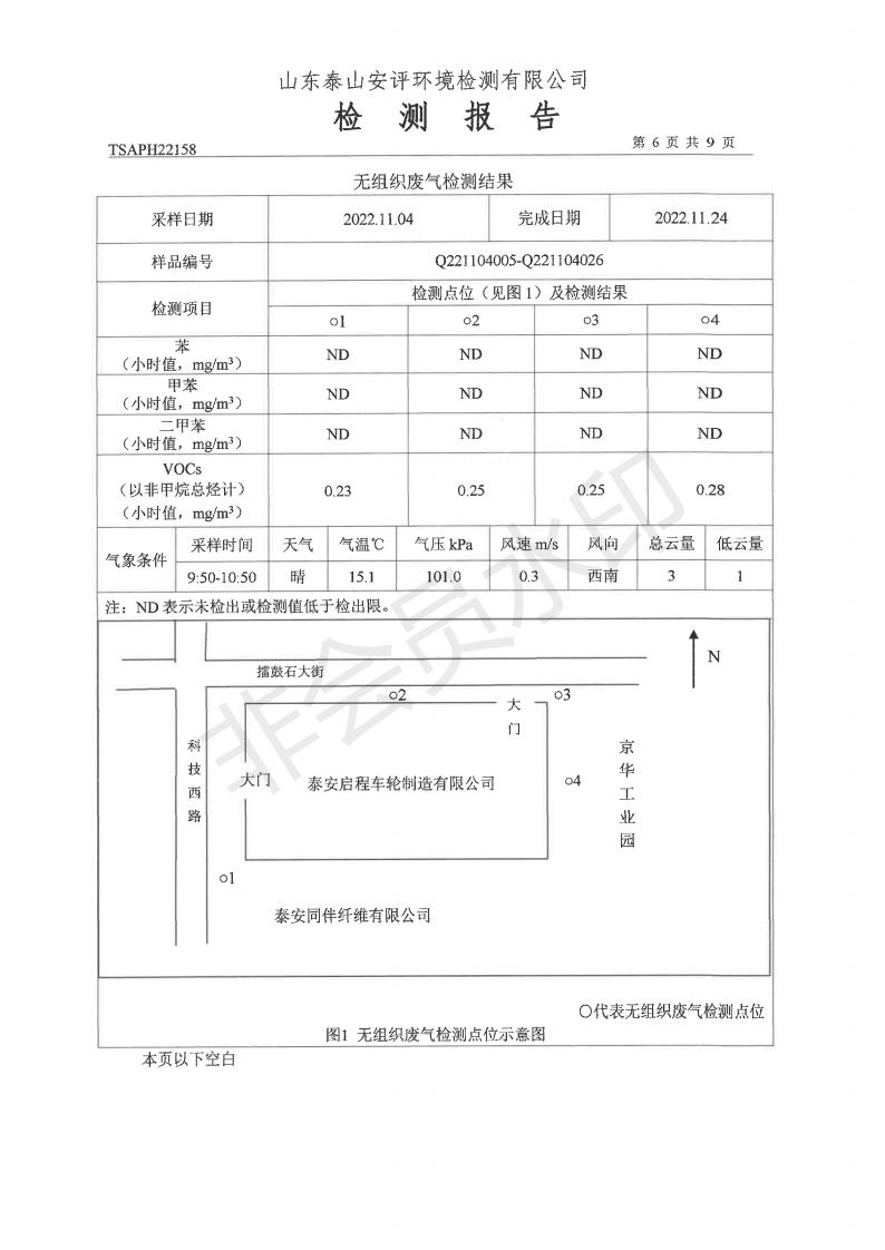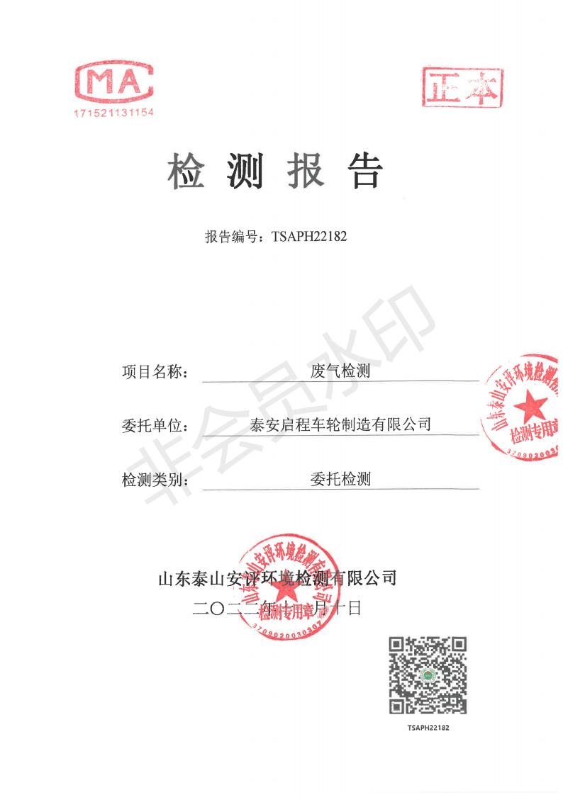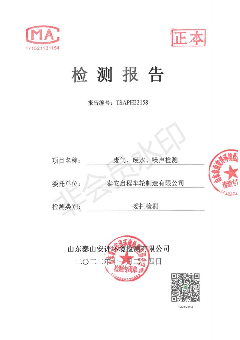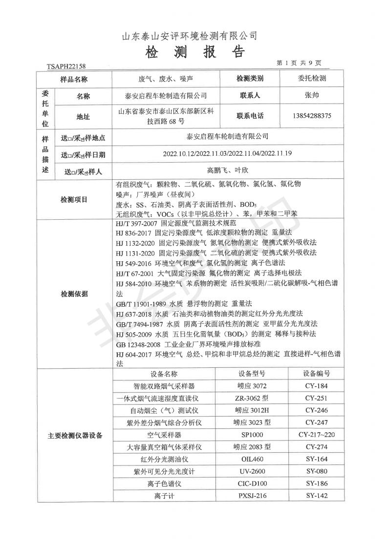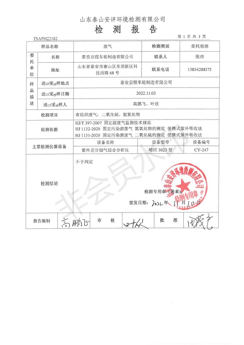 泰安啟程車輪制造有限公司2022年11月份及4季度環(huán)境污染物排放檢測報告