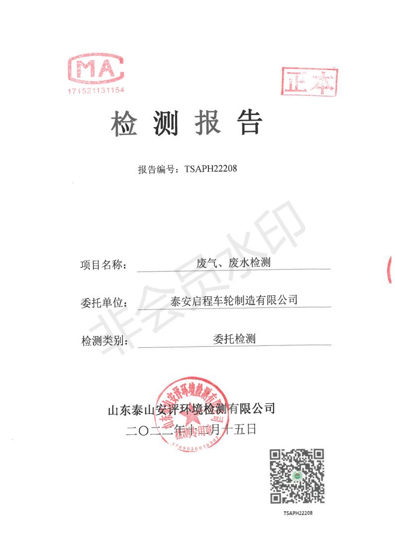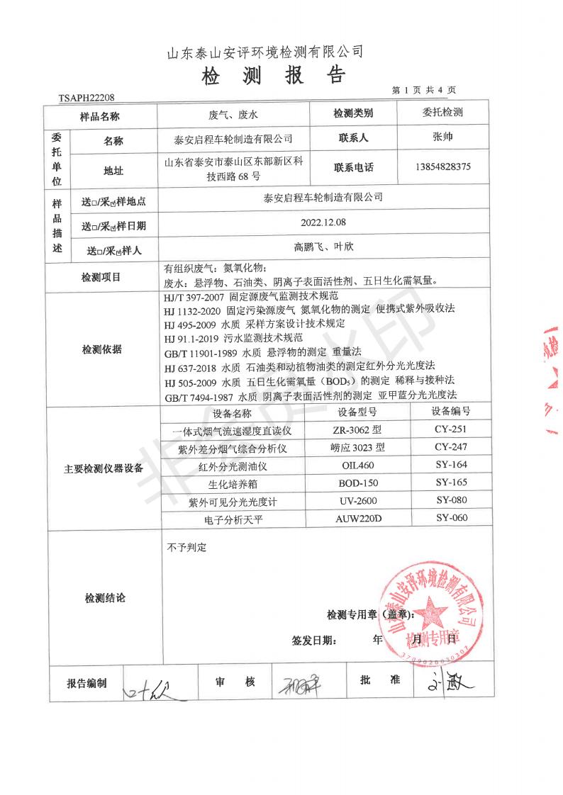 泰安啟程車輪制造有限公司2022年12月份環(huán)境污染物排放檢測報告