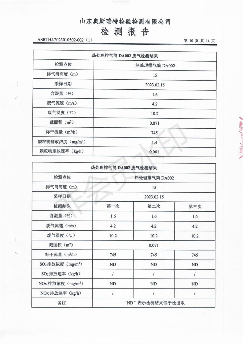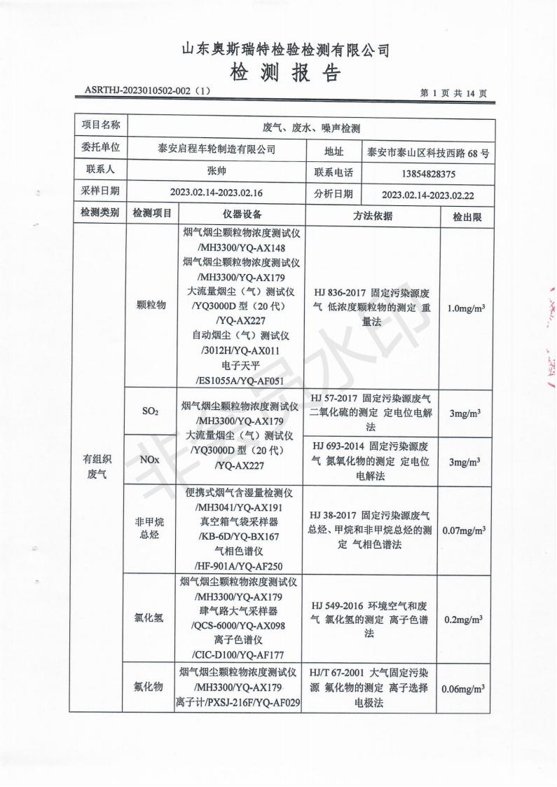 泰安啟程車(chē)輪制造有限公司2023年2月份環(huán)境污染物排放檢測(cè)報(bào)告