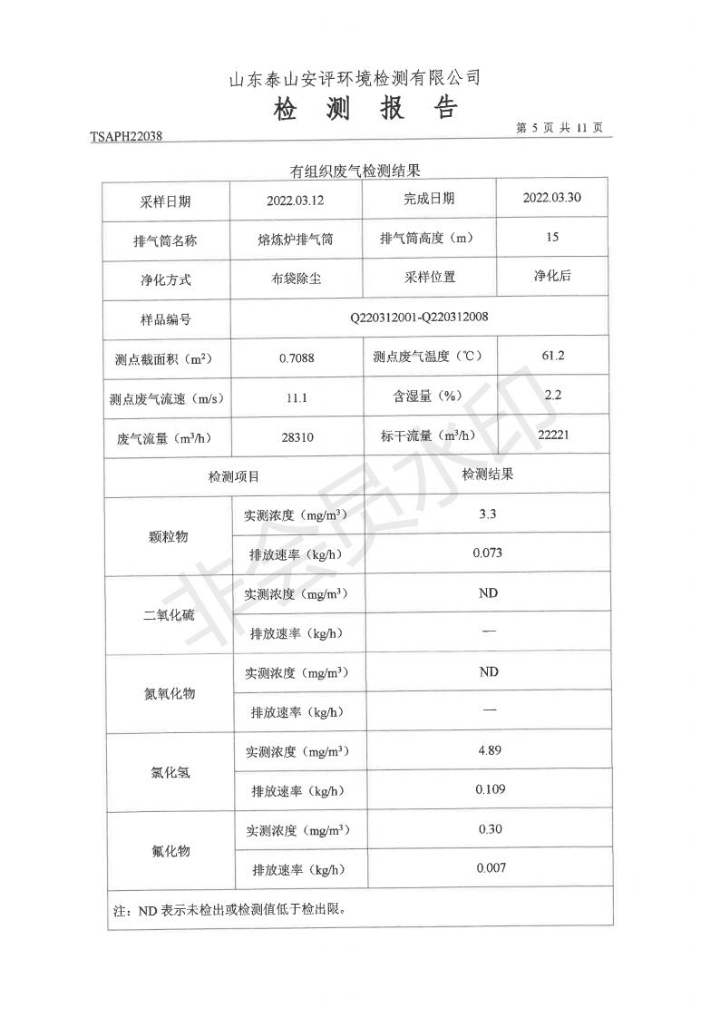泰安啟程車輪制造有限公司2022年3月份環(huán)境污染物排放檢測(cè)報(bào)告